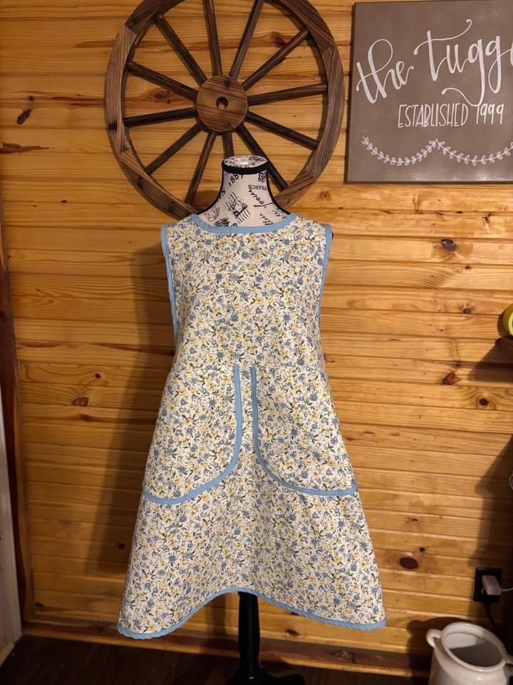 These aprons are sometimes referred to as "prairie aprons" or "country aprons" due to their traditional style.